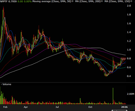 On the short side, I’m watching UURAF and GLASF. UURAF has run roughly 75% recently and is now pushing into resistance, so a pullback wouldn’t be surprising. GLASF stands out as one of the few cannabis names that hasn’t fully retraced back to its post-hype lows from late last year.