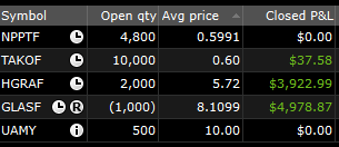 Most of my $GLASF position has been closed, which will bring the closed profit to about $5.5k. I still have 1,000 shares short that I may cover soon so I can free up the buying power to short more HGRAF.